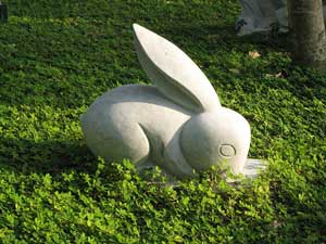 月兔的记载,首见于屈原的《天问》:“夜光何德,死而又育?厥利维何,而顾菟在腹。”中国神话中的月兔在月球上捣药,在嫦娥奔月后,一直在月球上陪伴她。日本神话中的月兔则是在上面制造麻糬。朝鲜童谣《小白船》也提到月中有兔。