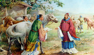 苏代有事情要去游说齐王, 在他未晋见齐王之前, 他先去游说淳于髡。苏代说: “听说有一个卖骏马的人, 一连三天在市场叫卖, 无人问津, 于是他就去拜访伯乐, 请伯乐绕着骏马细看一下, 离开一会后再回头去看看马, 结果一日之内他的骏马就涨价十倍。现在我想送给齐王匹骏马, 可是就没有门路, 请阁下作我的伯乐, 我愿意奉上白璧一双和黄金千镒, 作为马的饲料。”