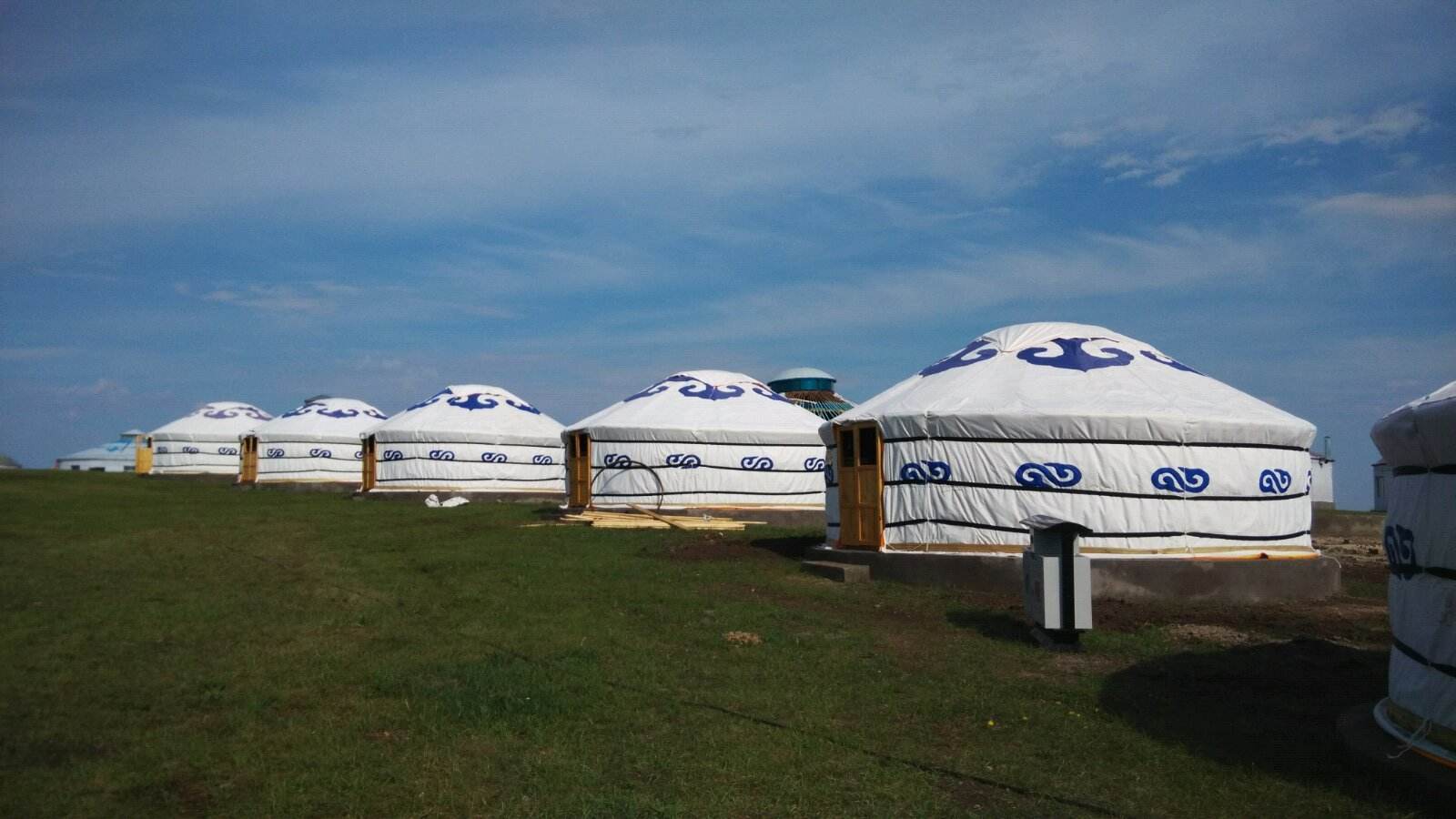 蒙古包呈圆形,一般高为3.3米至5米,其架设一般是在水草适宜的地方,根据包的大小先画一个圈,再沿着画好的圆圈将哈那(即蒙古包的木制骨架,由2.5米长的柳条交叉编成)架好,再加上顶端的乌尼(即蒙古包顶端的伞形骨架,为3.2米长的柳条棍),接着将哈那和乌尼按圆形衔接在一起绑架好,然后在顶上和四周覆盖一至两层厚厚的毛毡,之后用马鬃或驼毛拧成的绳子捆绑好,顶端开一“套瑙”,意思是天窗,可以起到排烟、通气、照明、采光的作用,蒙古包就此大功告成了。